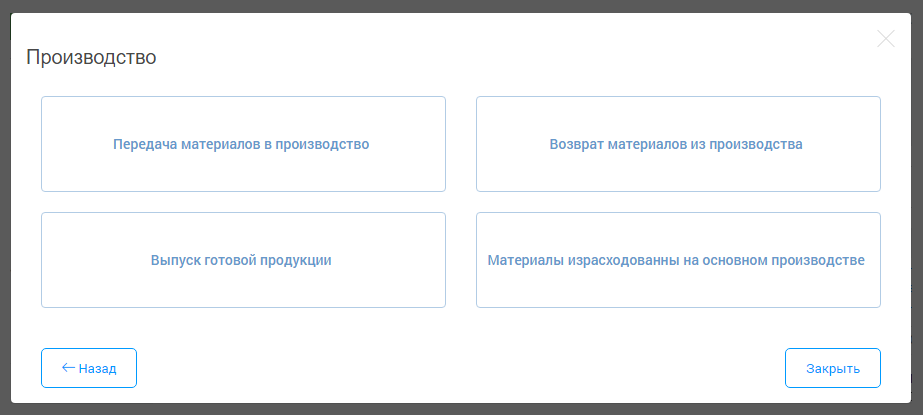 Операция «Производство» доступна только для компаний, указавших производственный тип деятельности при регистрации в учетной системе.